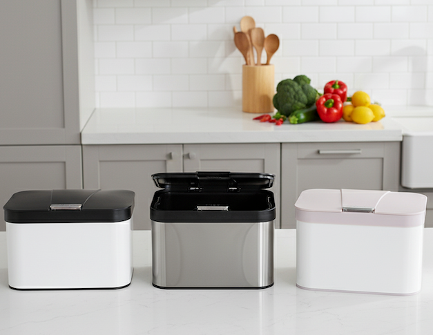 Väga praktiline, mugav kasutada ja samal ajal istub segamatult köögi tööpinnal oma stiilse tagasihoidlikkusega peites hoolikalt kõiki neid biojäätmeid :)